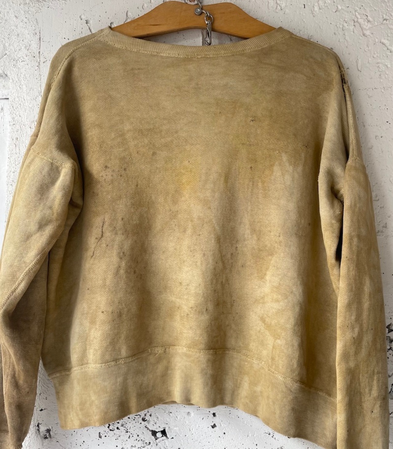 ホワイトだったこのスウェットを変身させてくれたのは、オリーブ染め。