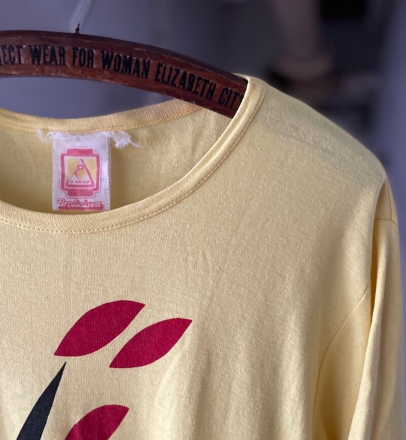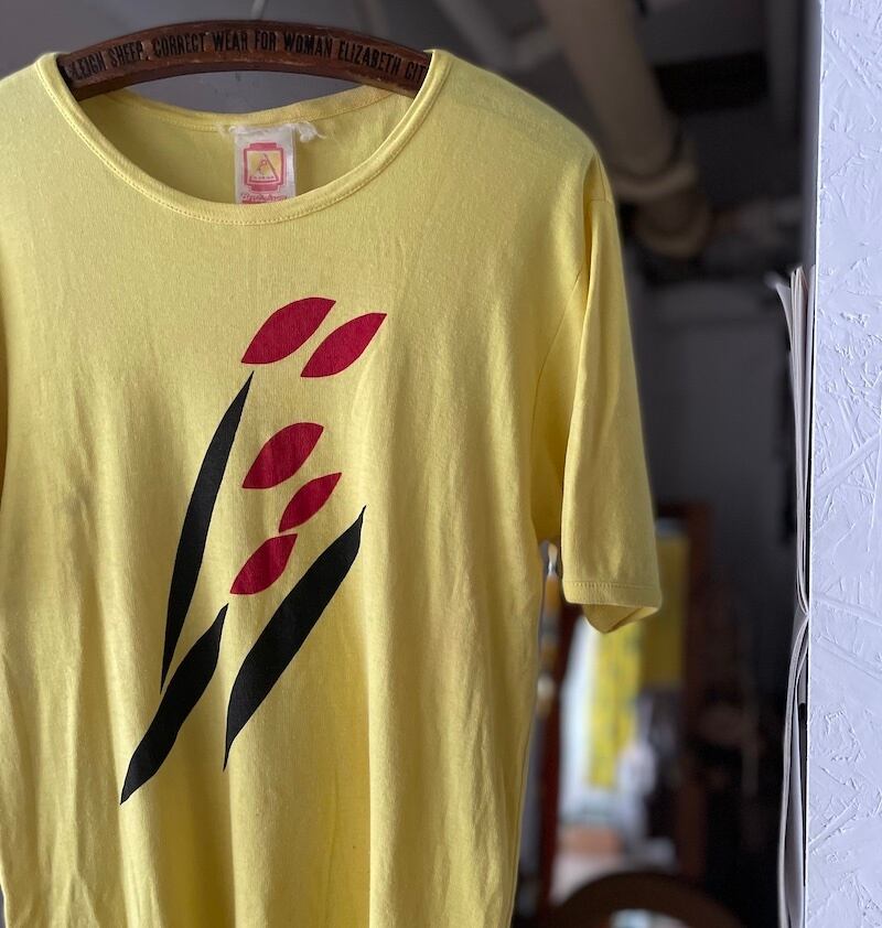 柔らかな生地、大きめの襟ぐり、謎モチーフだけど可愛らしさを感じられる発色の良いプリント。