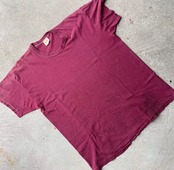 ラッセルのヴィンテージTシャツ。この年代特有の襟の付け方は、ヨレヨレになりづらく個人的には好みです。色もいいですね。褪せたマルーンカラー。そして、意外とプリントなしの無地ってのは見つかりづらいかと思います。雰囲気の良いヴィンテージTシャツ、お探しの方はこの機会にぜひ。