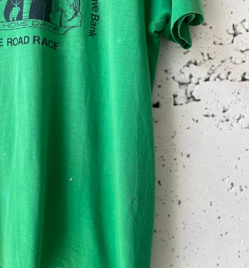 OLD HOME DAY。収穫祭に近い、地元のお祝いみたいな立ち位置のものらしいです。地域密着型古着。プリントの4人もいい顔してますね。子ども2人は喧嘩してるのかブーたれてるのかなんなのか、人間味あふれるイラストです。ボディはHanes 、USA製。少しのやれ感だっていい味です。